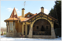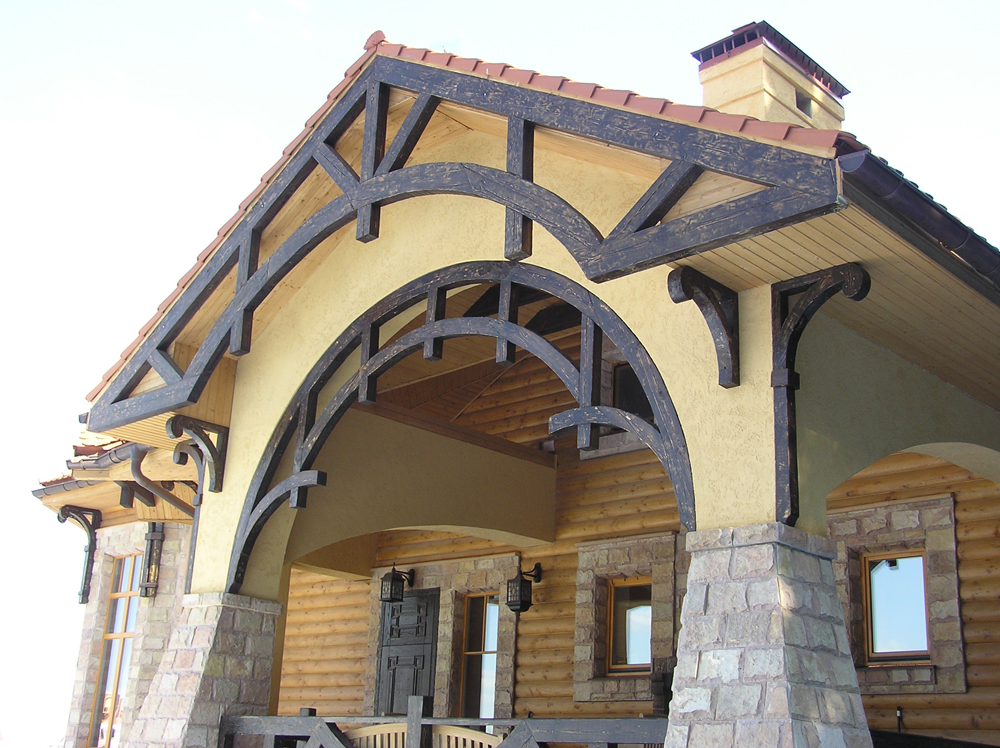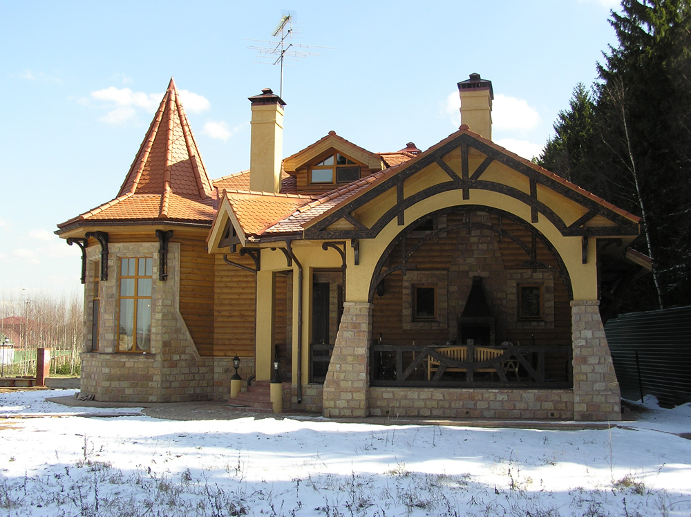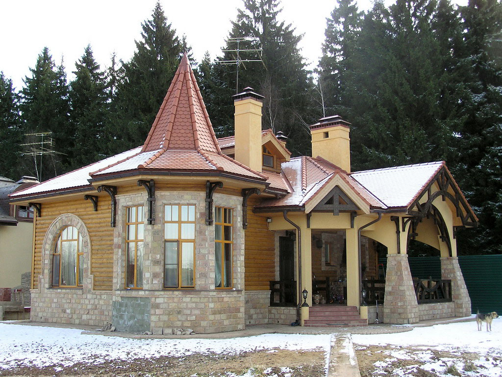 Наружная отделка стен: Натуральный или искусственный камень , белая штукатурка