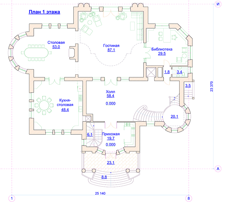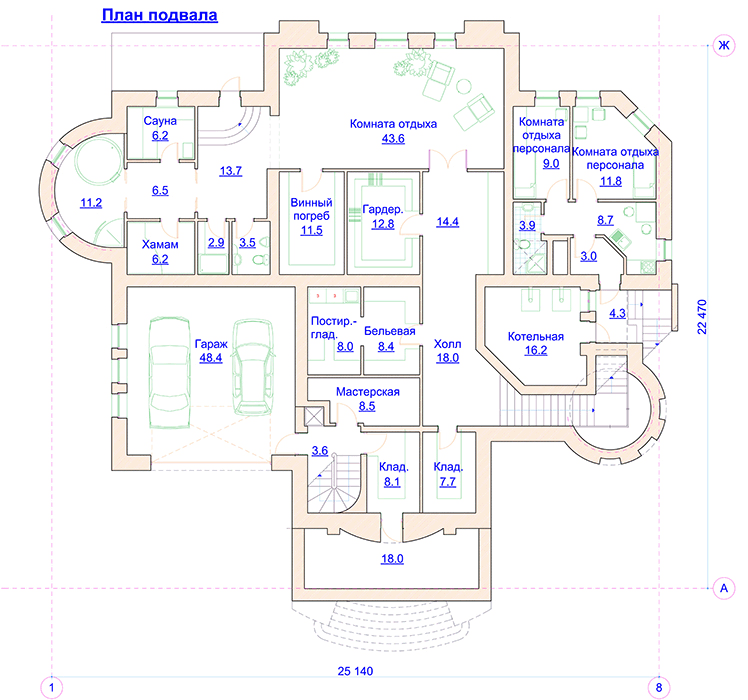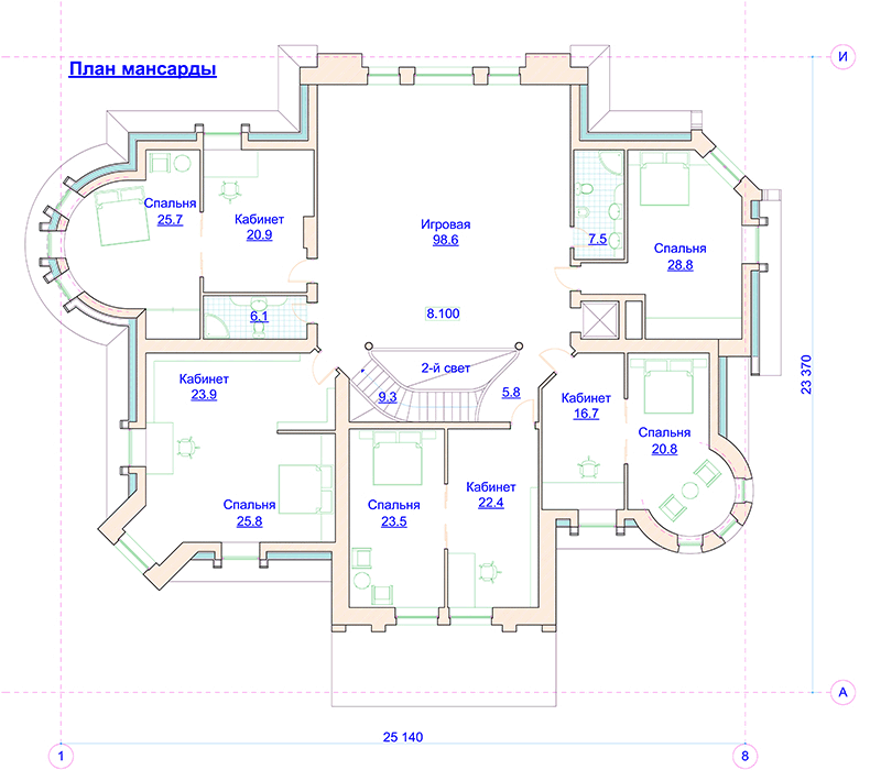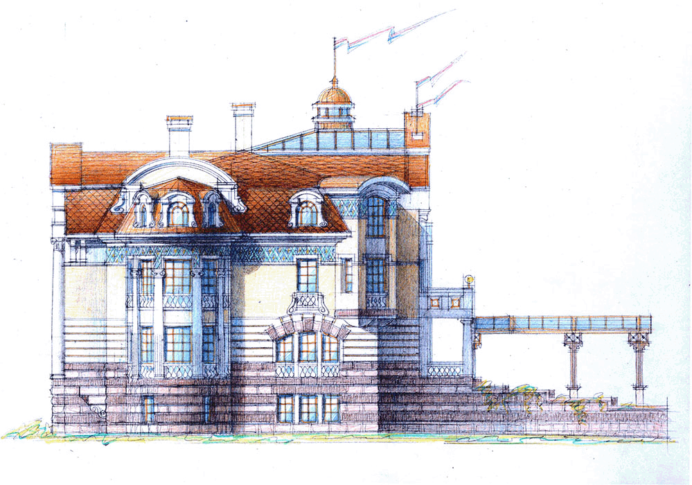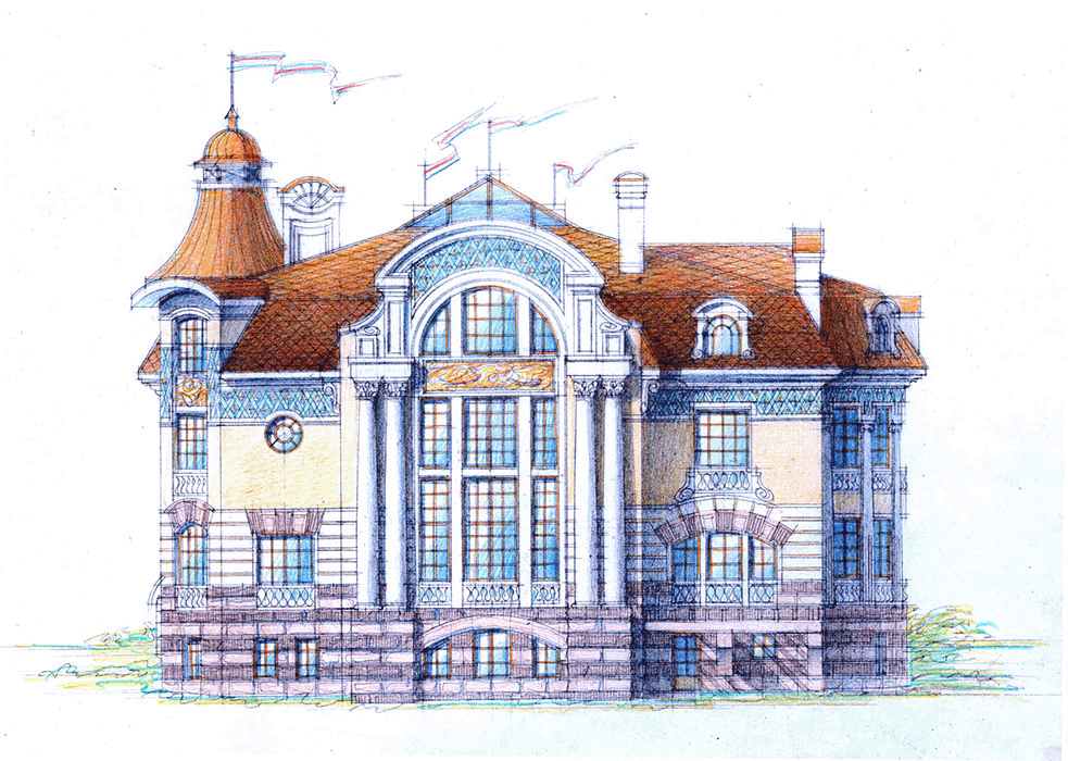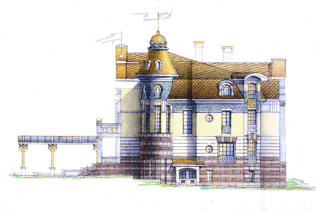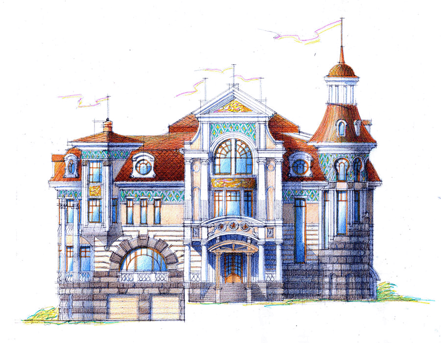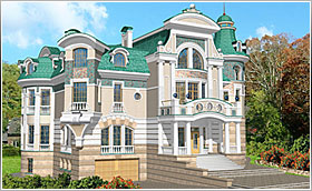 Тип фундамента - монолитная плита Материал наружных стен - кирпич с утеплителем (640мм) Перекрытия - сборные ж/б плиты Крыша - мансардная Покрытие кровли - мягкая-, металлочерепица Наружная отделка стен - цветная фасадная штукатурка, декоративная фасадная плитка, детали белого цвета Цоколя - натуральный (искусственный) камень