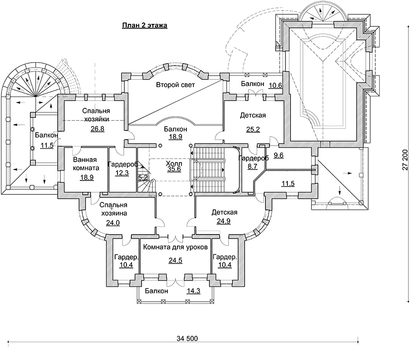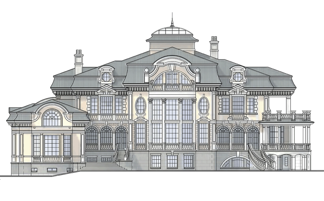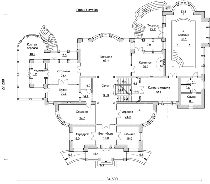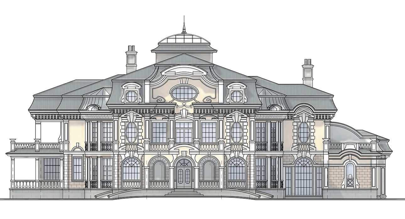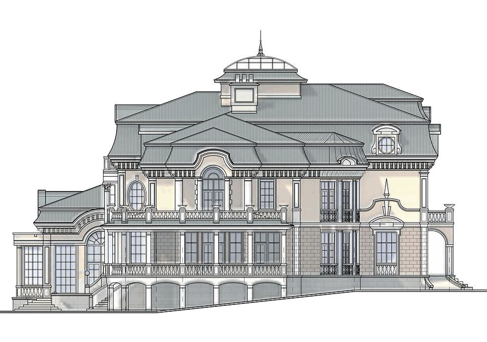 Площадь дома 1 346.0 м2 Общая площадь (приведённая) 1 247.1 м2 Площадь застройки 701.3 м2