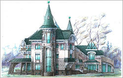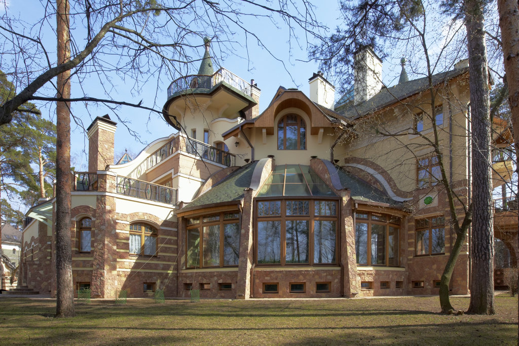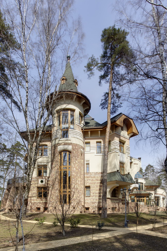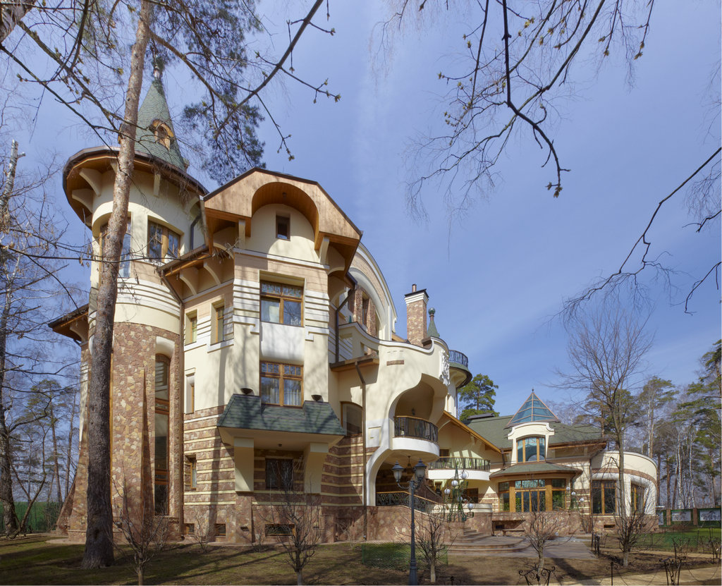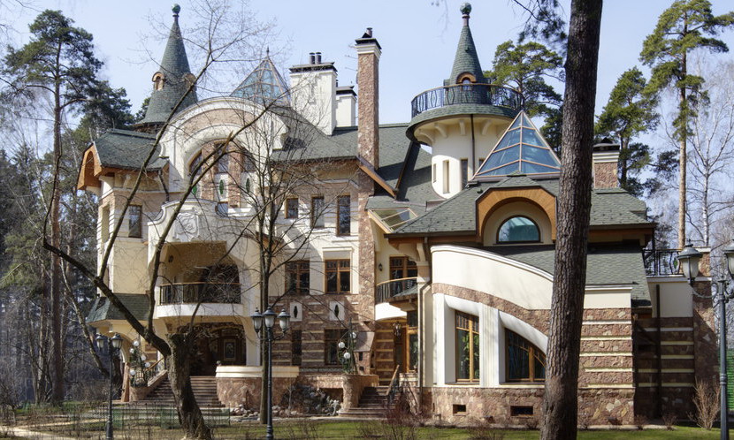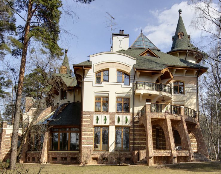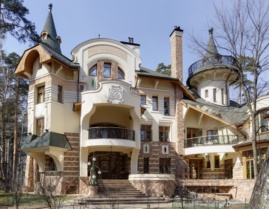 6. Фасады -цоколь- облицовка природным камнем, Cтены - 1 этаж - облицовка природным камнем, детали - штукатурка белого цвета, 2 этаж - штукатурка.