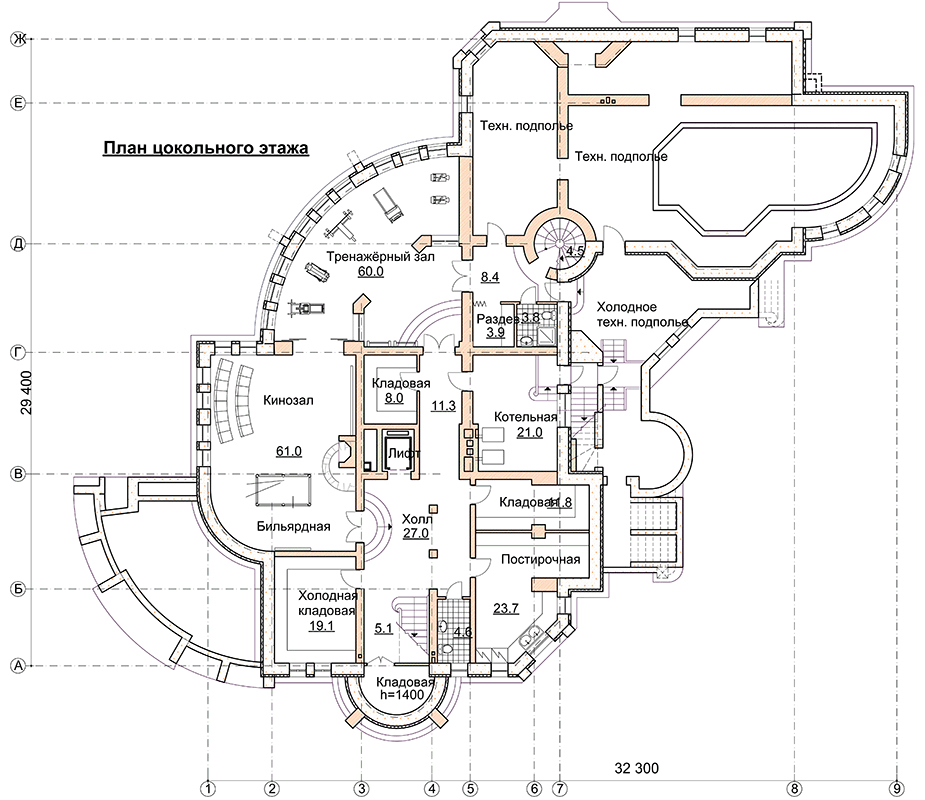 1. Фундамент -монолитная плита, монолитные стены