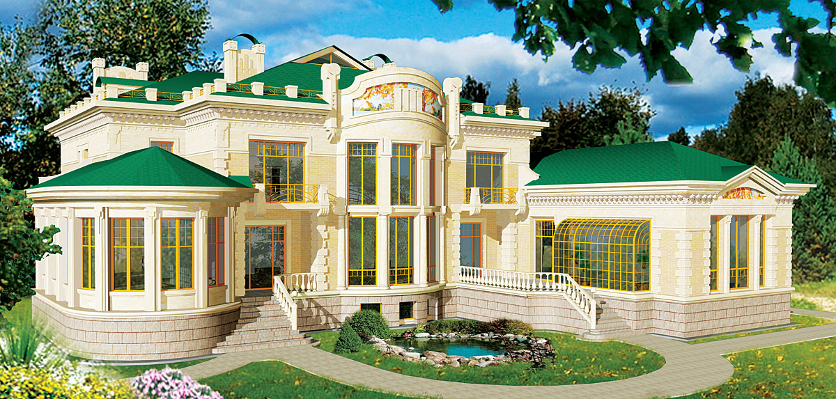 Наружная отделка – натуральный камень, декоративная фасадная плитка, декоративная штукатурка.