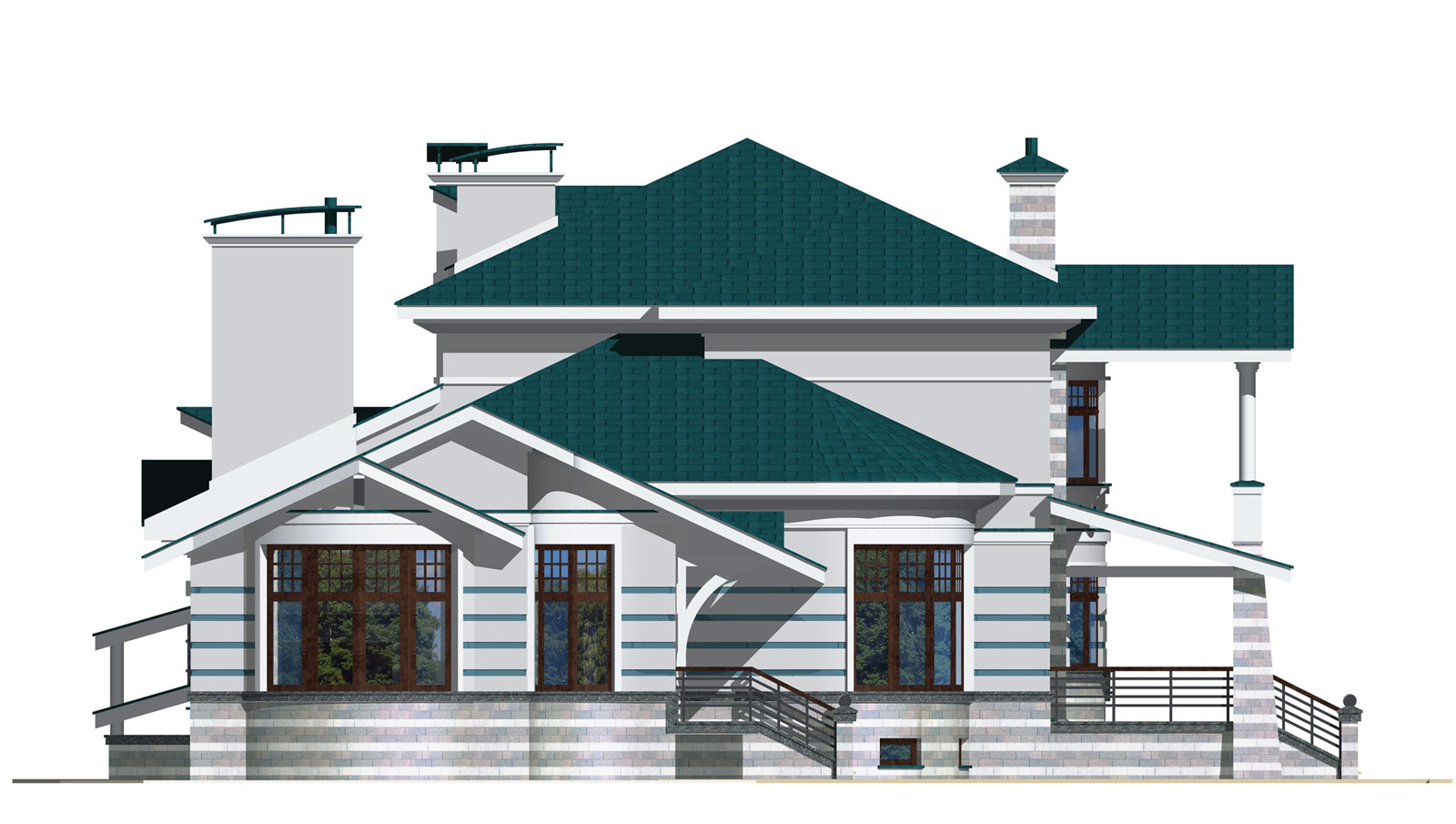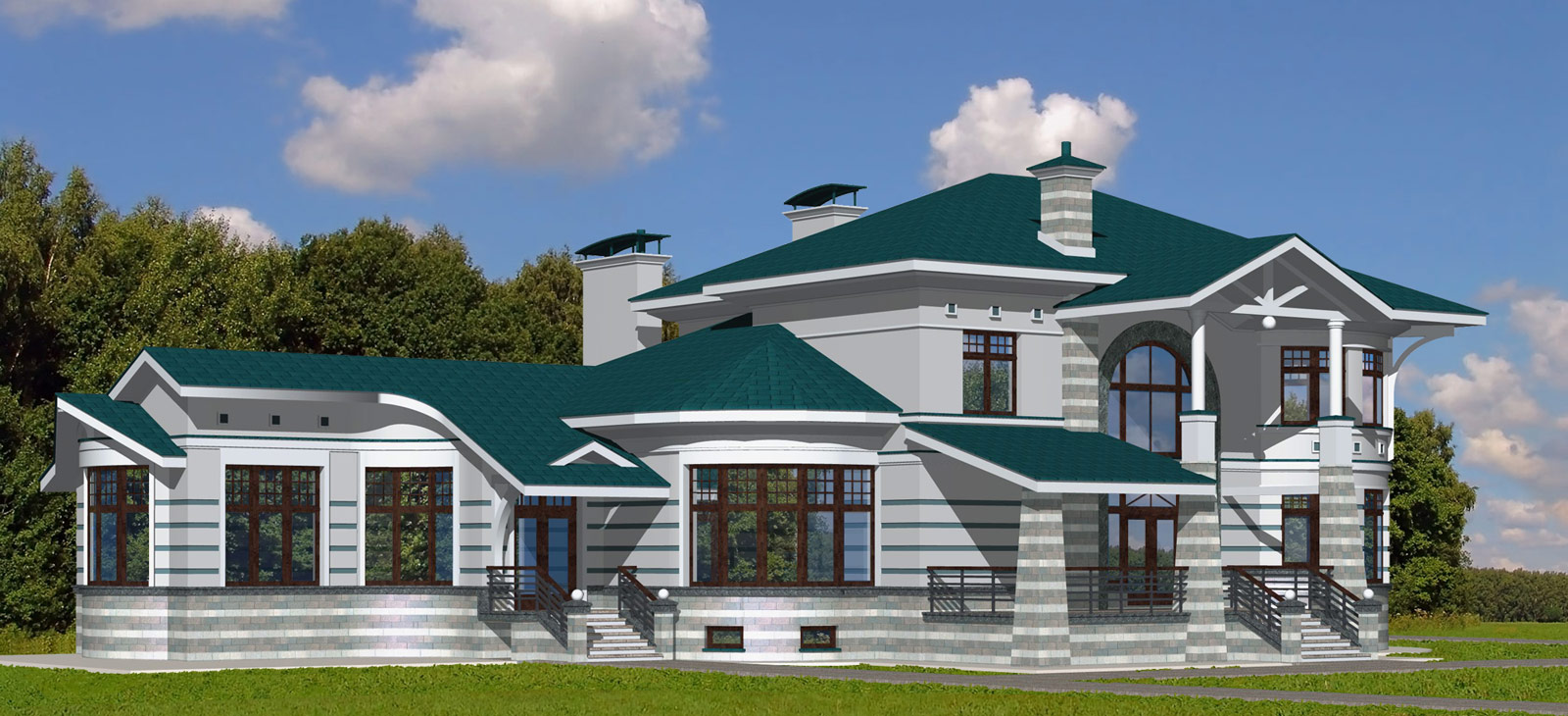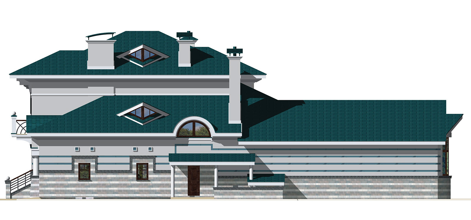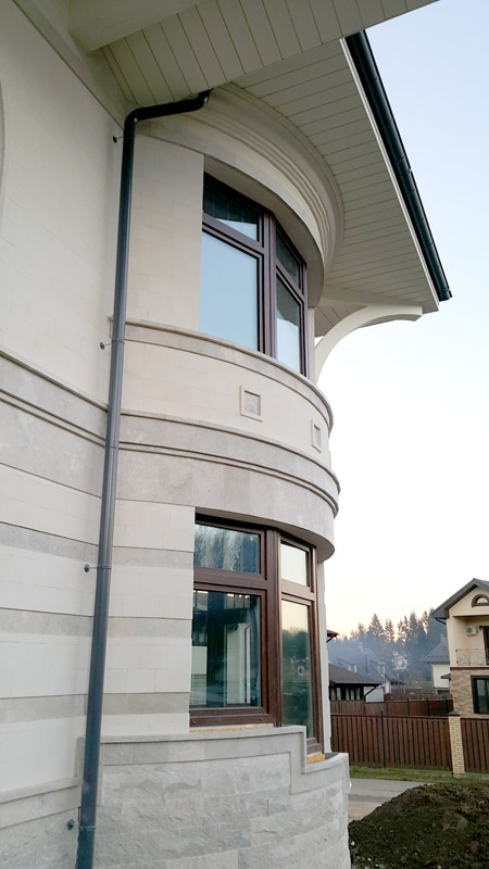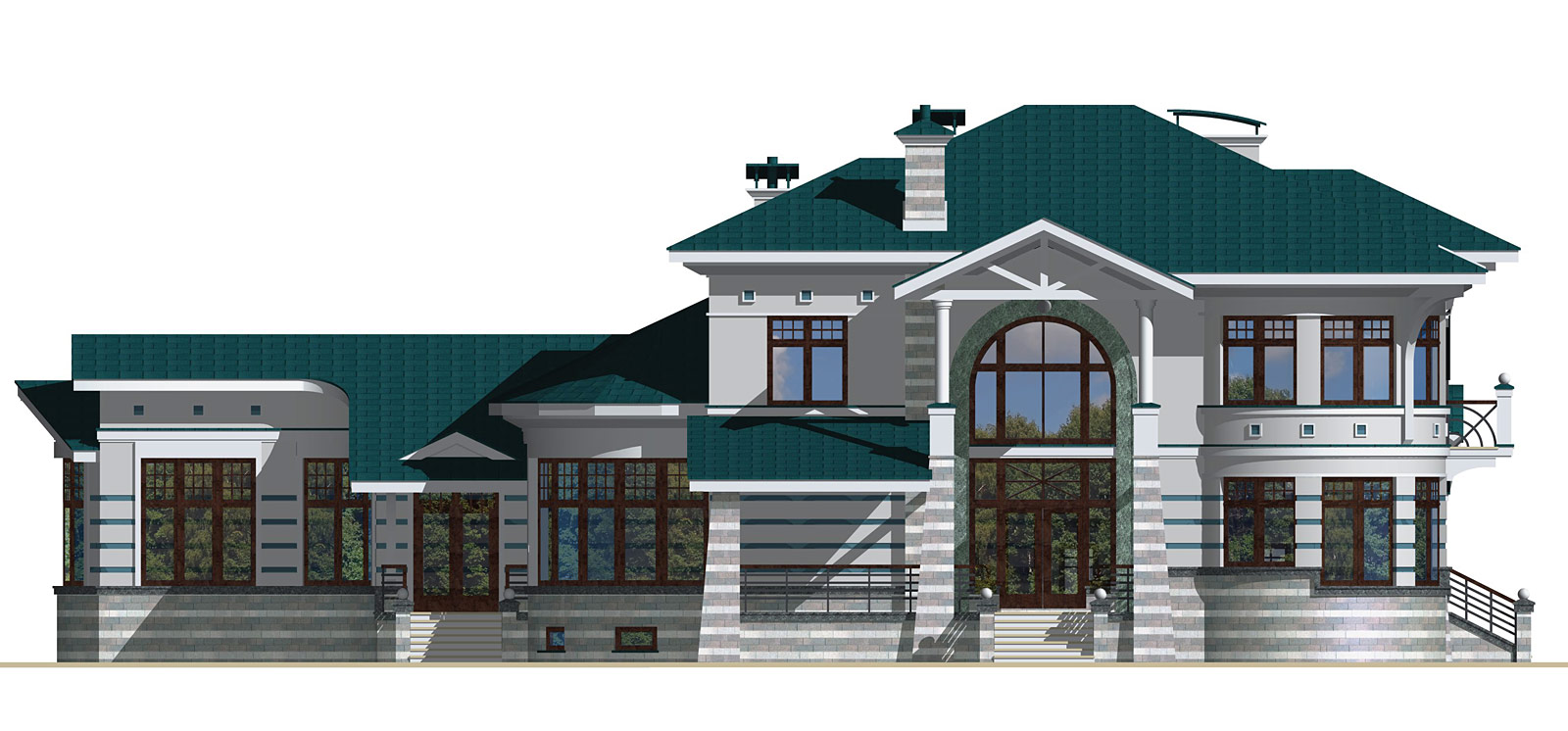 В отделке здания предполагается применение естественного камня и каменной штукатурки."