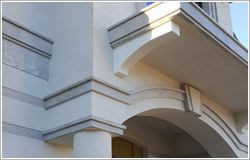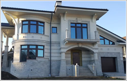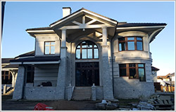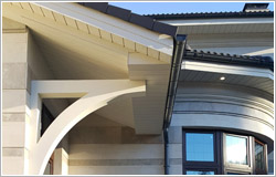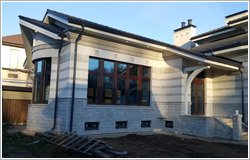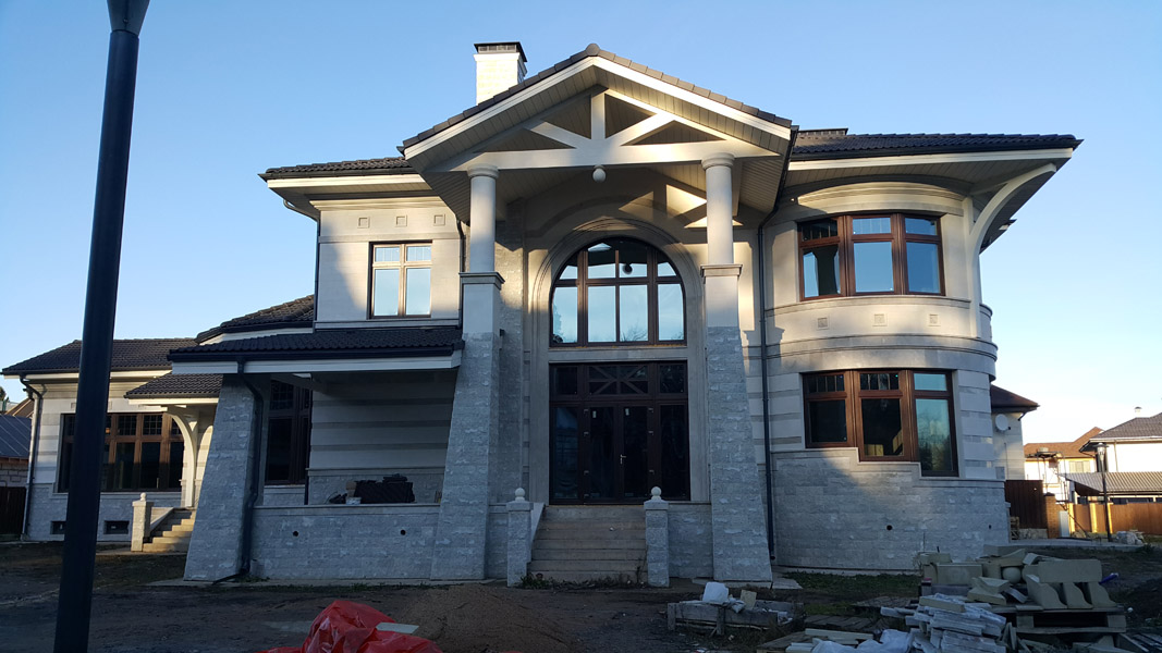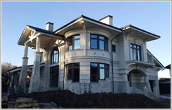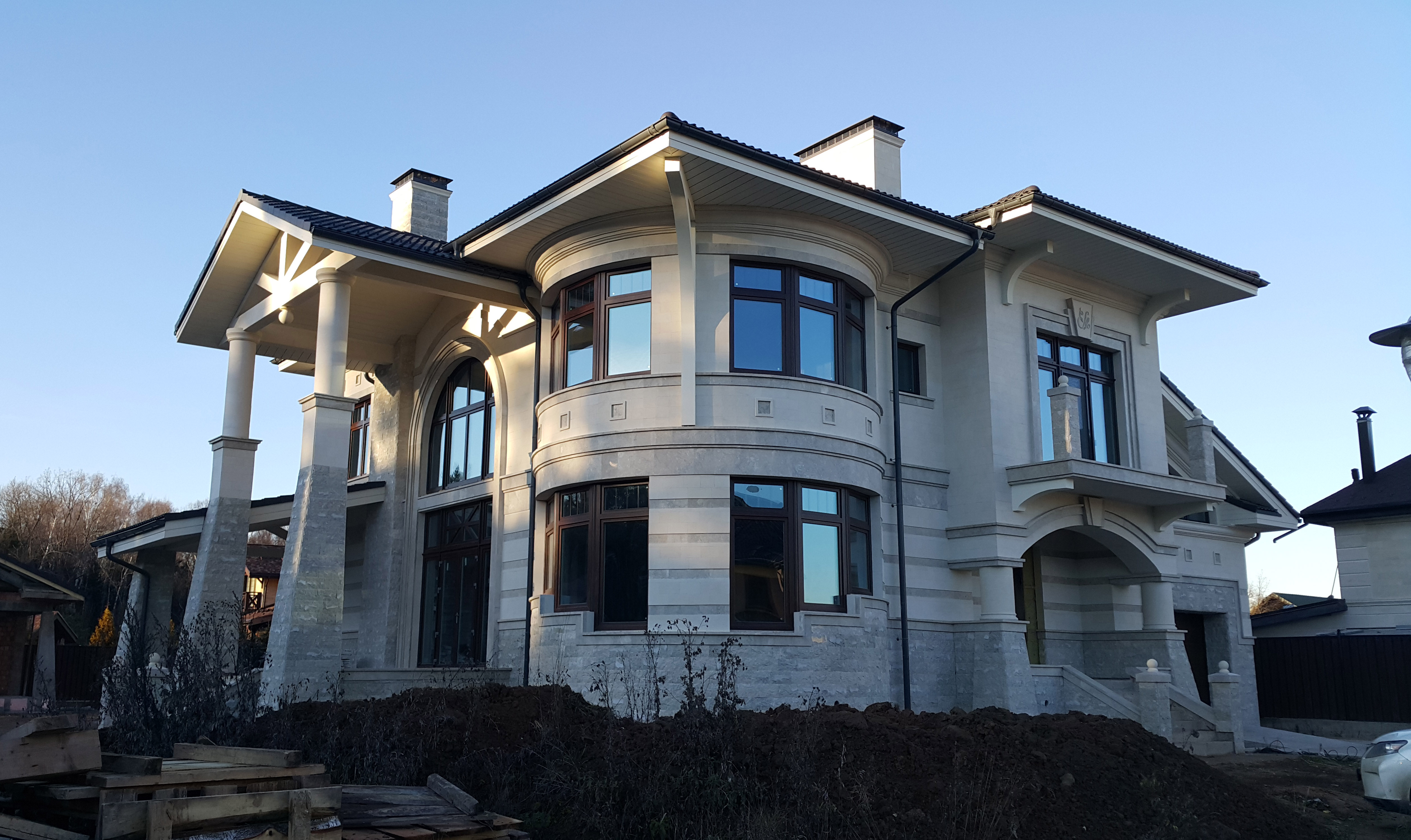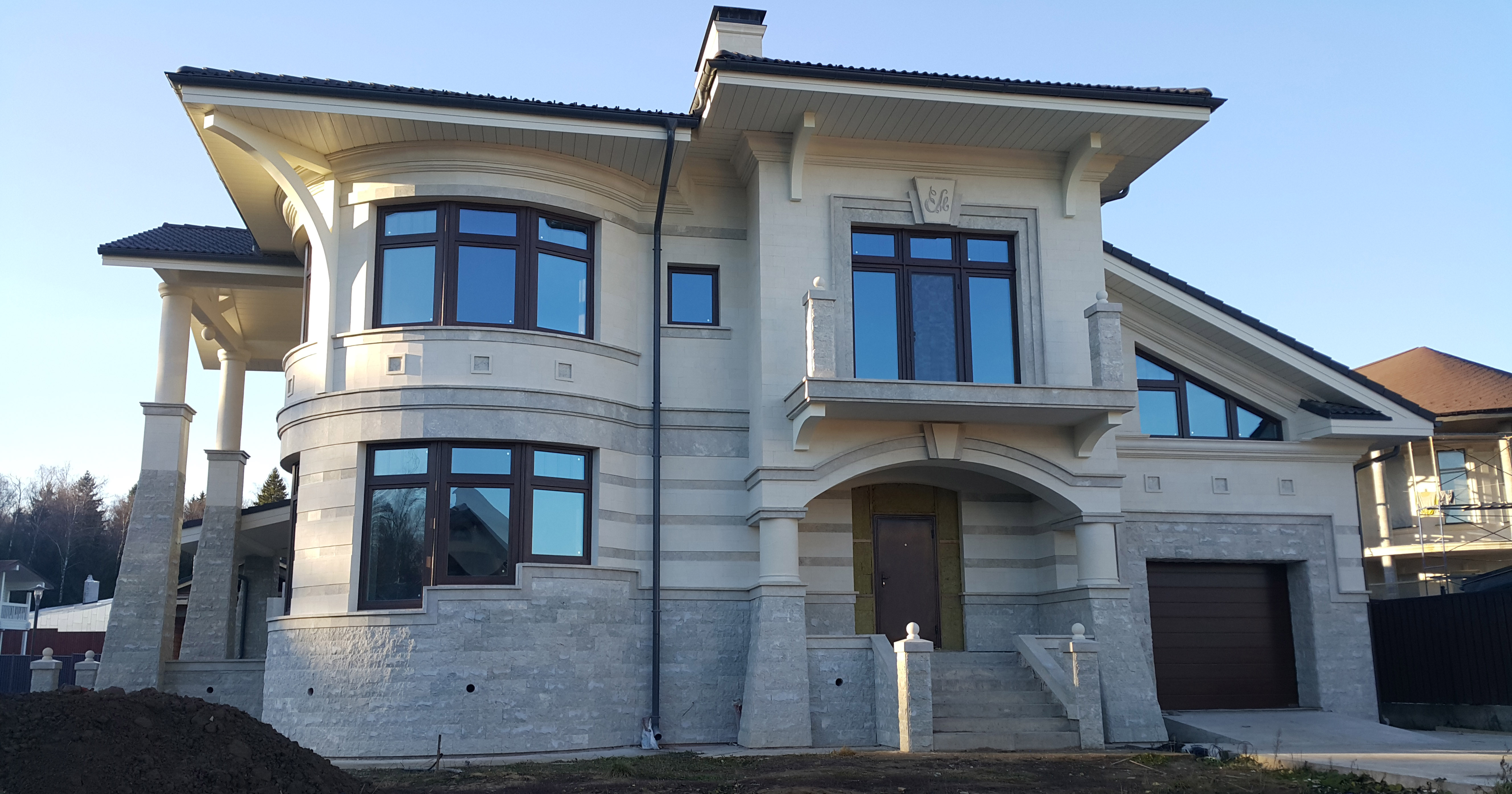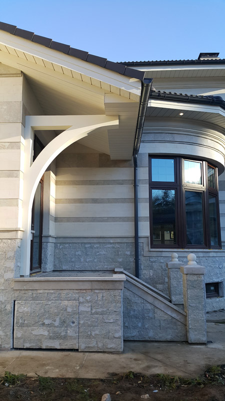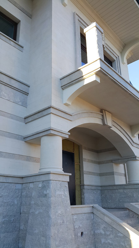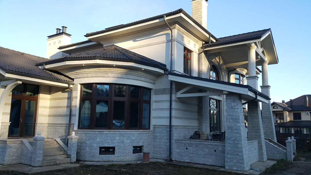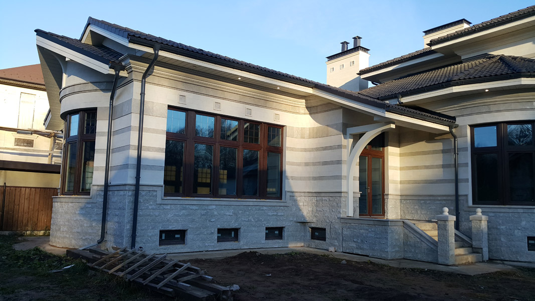 В отделке здания предполагается применение естественного камня и каменной штукатурки."
