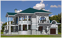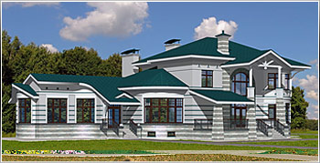 Здание поставлено так, чтобы максимальная часть участка оставалась свободной, а все основные помещения, были обращены на юго-запад.