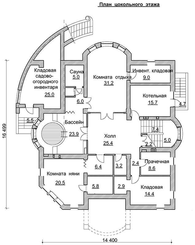 Общая площадь.........................672.3 м2 Жилая площадь.........................273.0 м2 Площадь застройки.....................328.6 м2