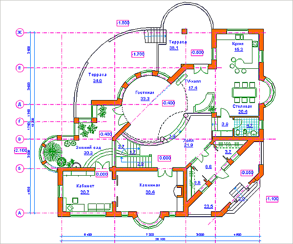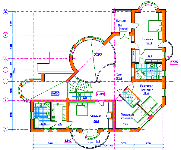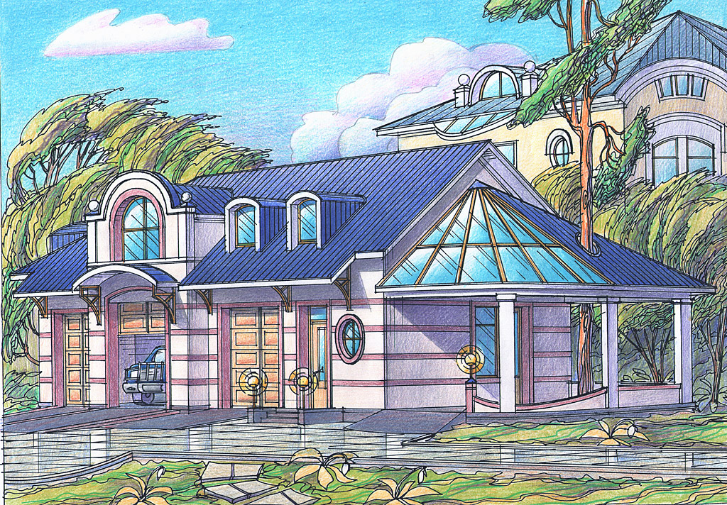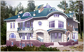 Концепцию предлагаемого проекта можно определить как планировочное разделение общих и индивидуальных помещений при зрительном объединении пространства дома в единое целое. В решении фасадов предпочтение отдано современным пластичным формам и декоративным элементам.