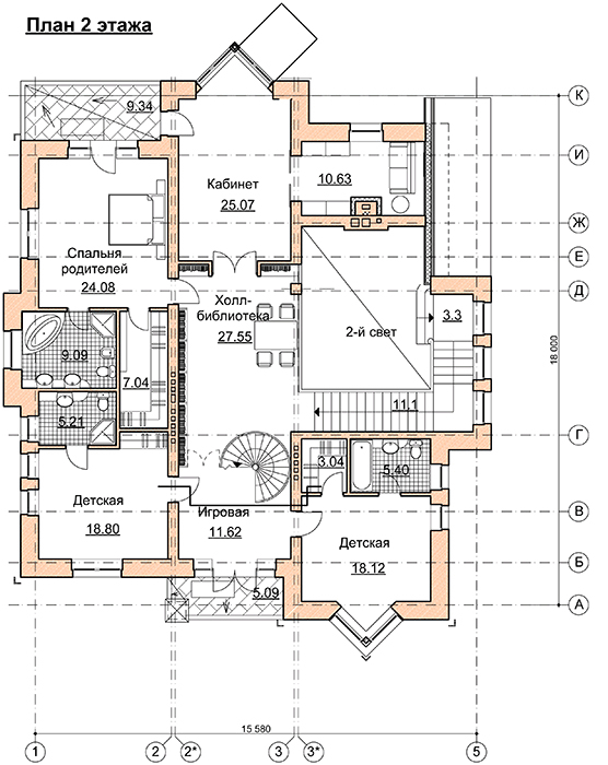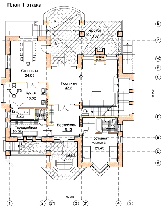 Строительная площадь дома.................600.1 м2 Общая площадь (приведённая)...............532.8 м2 Площадь застройки.........................324.0 м2