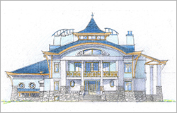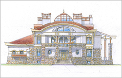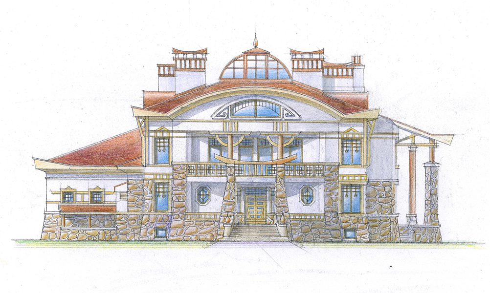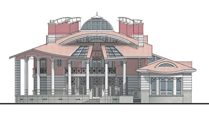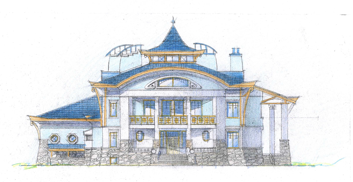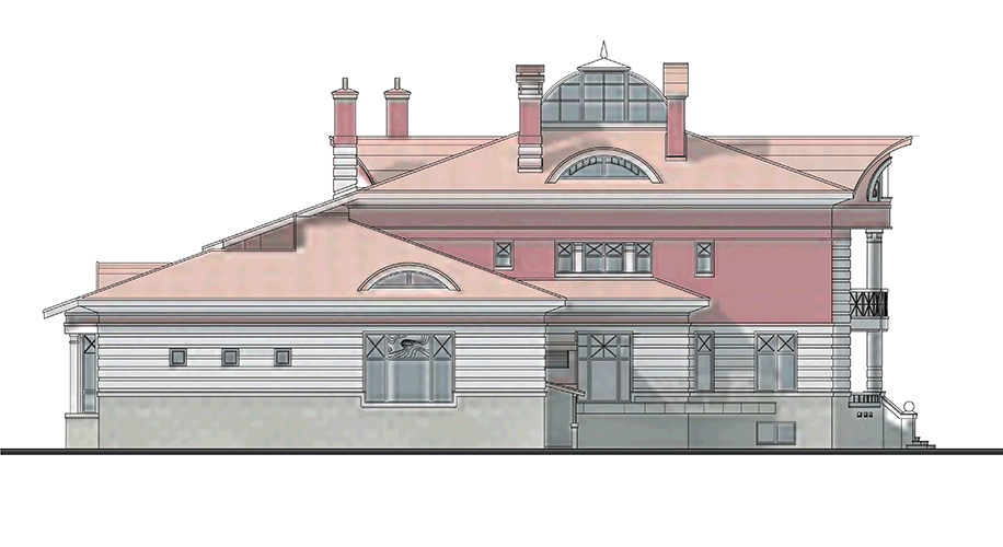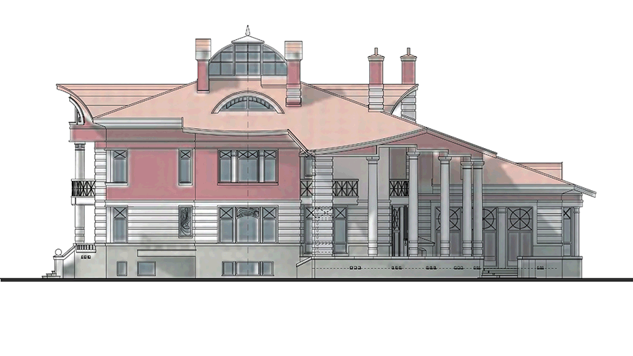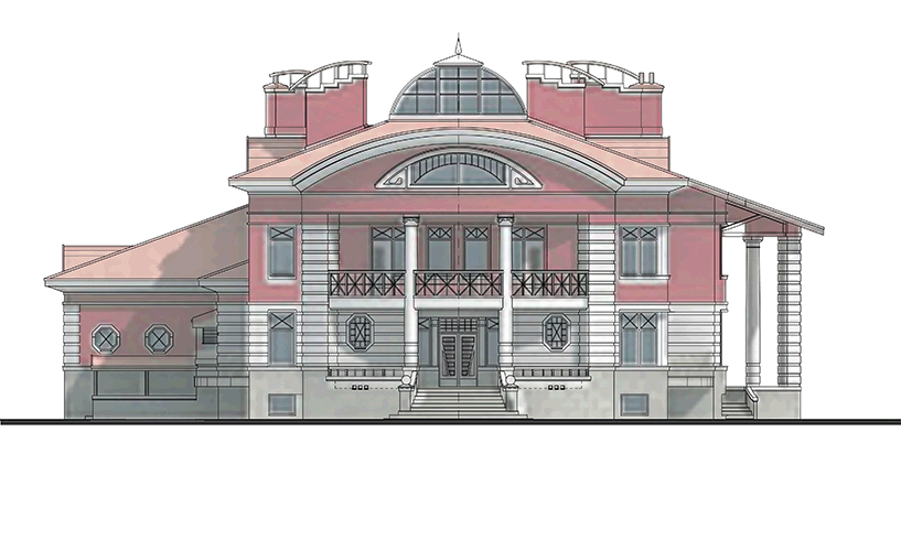 Образ здания, стилистически, можно определить как "постмодерн", с аллюзорной направленностью в сторону "нео-классицизма" конца 19, начала 20 в.в. Для проекта жилого дома почти центрическая композиция с максимальным раскрытием всех основных помещений на юг.