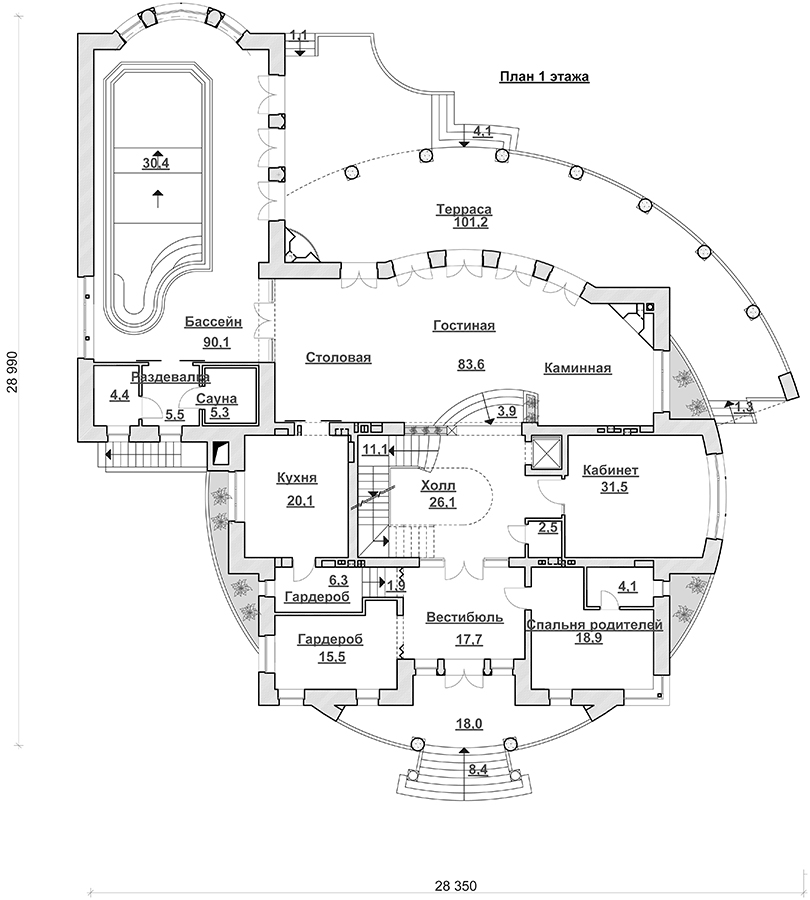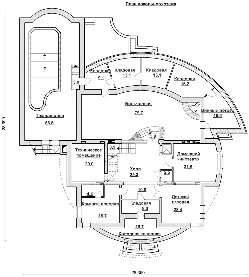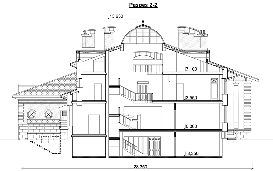 Лестницы - монолитные ж.б. с облицовкой природным камнем.
