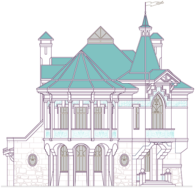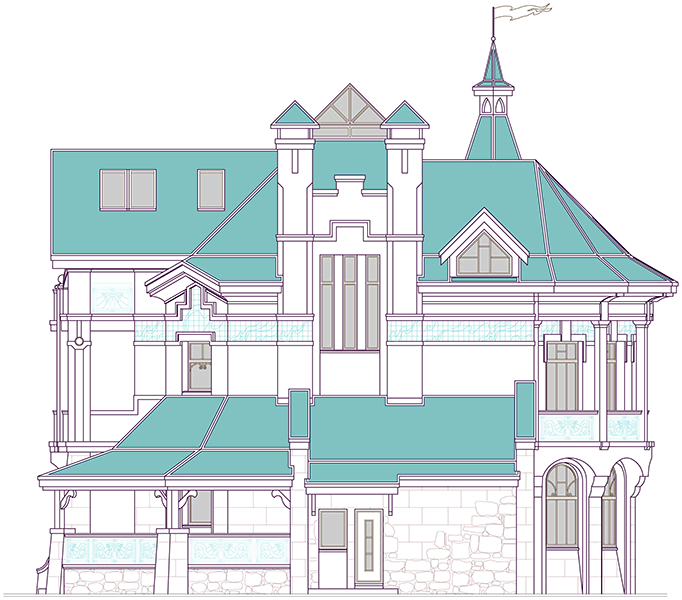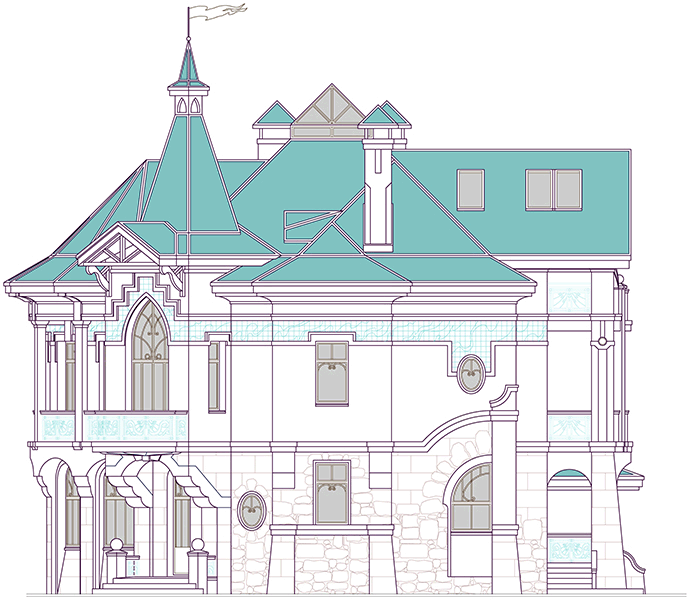 Кровля:..........скатная, мансардная; покрытие - гибкая или металлочерепица