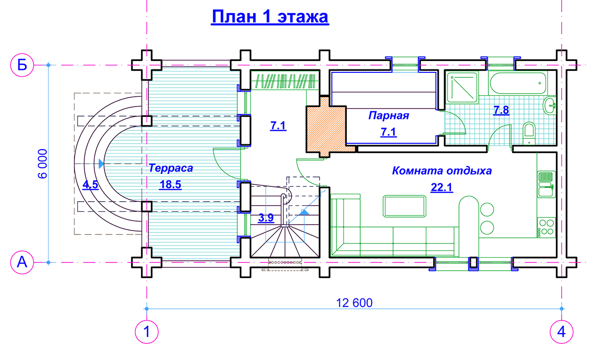 Разработаны разделы АР (архитектурное решение) и КР (конструктивное решение) за исключением развёрток и конструкций брусовых стен.