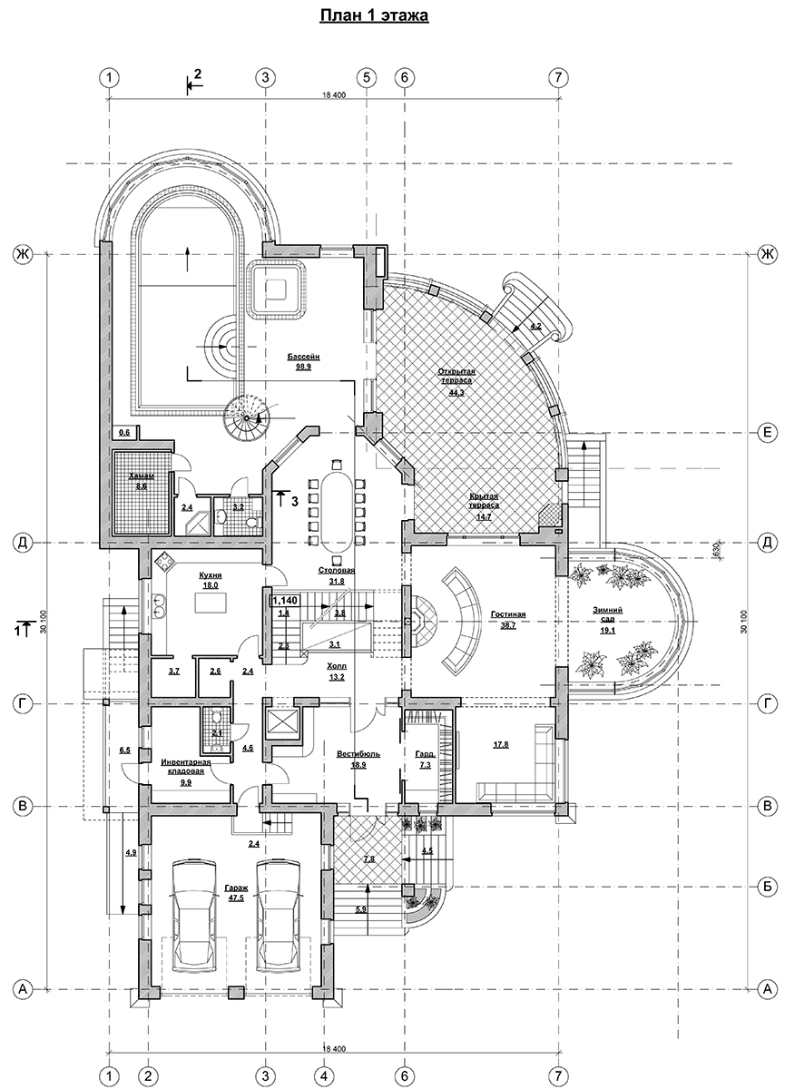 Общая площадь дома – 1102.8 м2