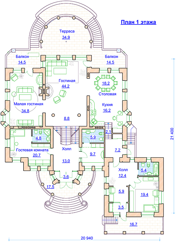 Жилая площадь – 210,0 м2