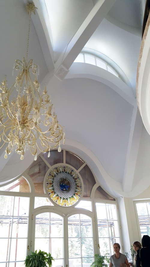 Кровля -- скатная, мансардная (утеплённая), с деревянными стропилами по металлическим балкам
