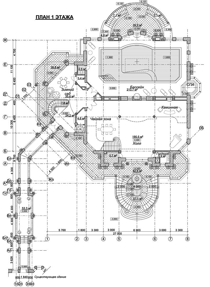 В данном проекте разработаны разделы: АР "Архитектурное решение", ВК "Водоснабжение и канализация", АД "Архитектурные детали", ТС "Технические решения", КР "Конструктивное решение"