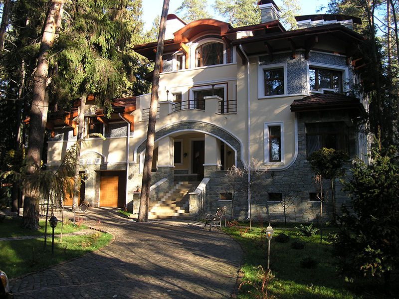 В стилистике дома использованы элементы американского модерна (в частности творчества Ф.Л. Райта и Д. Салливана.
